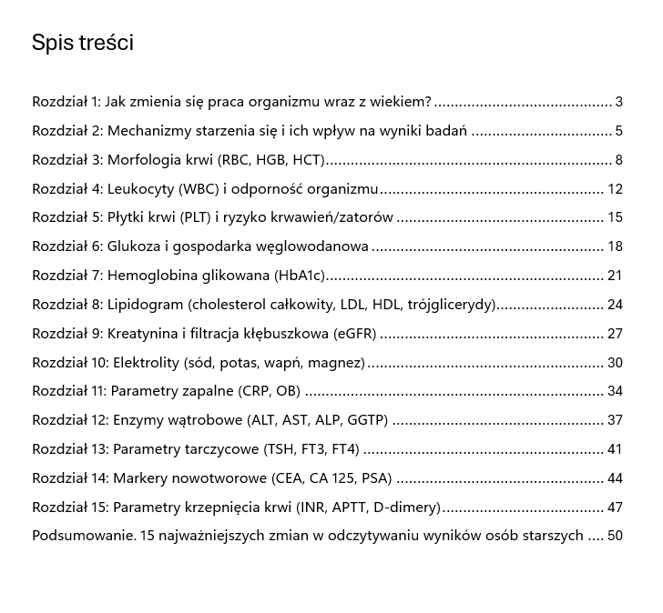 Te notatki to praktyczny przewodnik, który pomaga spojrzeć na wyniki laboratoryjne przez pryzmat fizjologicznych zmian związanych ze starzeniem się. Zrozumienie unikalnych procesów zachodzących w organizmach osób starszych pozwala unikać błędów w ocenie ich zdrowia – ponieważ: nie można interpretować wyników seniorów według tych samych norm, które stosujemy u młodych, zdrowych dorosłych.